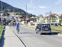 Ein Velokonvoi mit bunten Badenudeln auf den Gepäckträgern demonstrierte in Bern für einen seitlichen Überholabstand von 1 bis 1,50 Metern zwischen dem motorisierten Verkehr und Velos.