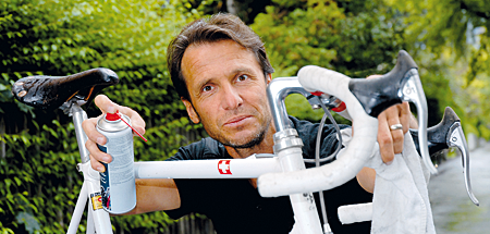 Der ehemalige Zweitligafussballer des FC Chur stapelt zu tief, was seine Fähigkeiten als Velosportler angeht. Denn immerhin fuhr der heute 45-Jährige diesen August, zusammen mit Kollegen seiner Filmcrew und einigen Veloenthusiasten, von Zürich nach Locarno. Am Zielort erwartete sie die Premiere des Films «Hugo Koblet – Pédaleur de Charme». Das Unternehmen fand unter der Bezeichnung «Koblet Memorial Tour» statt. Gestartet wurde in der offenen Rennbahn in Oerlikon. Dort liegt der Grabstein Hugo Koblets. Als erster Etappenort wurde Chur gewählt. Hier besuchte das Velogrüppchen den Schauspieler und Koblet-Darsteller Manuel Löwensberg bei Theaterproben. Danach gab es einen Stopp im Bleniotal, wo man Remo Pianezzi, einem ehemaligen Teamkollegen von Koblet, die Ehre erwies. Und natürlich durfte man auf keinen Fall die Koblet-Gedenkstätte auf dem Monte Ceneri auslassen.