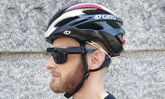 Das «Varia Display» ist gewöhnungsbedürftig. Mit 30 Gramm ist das Gerät zwar verhältnismässig leicht. Dennoch ist das Gewicht deutlich auf jener Seite der Sonnenbrille zu spüren, wo das Display montiert ist. Mit der Zeit gewöhnt man sich allerdings daran, und das Zusatzgewicht wird nicht zum Störfaktor. Mit aufgesetzter Brille und «Varia Display» sieht man aus wie aus einem Science-Fiction-Film. Irgendwie komisch. Die grösste Herausforderung ist aber, auf dem winzigen Display überhaupt etwas zu erkennen.