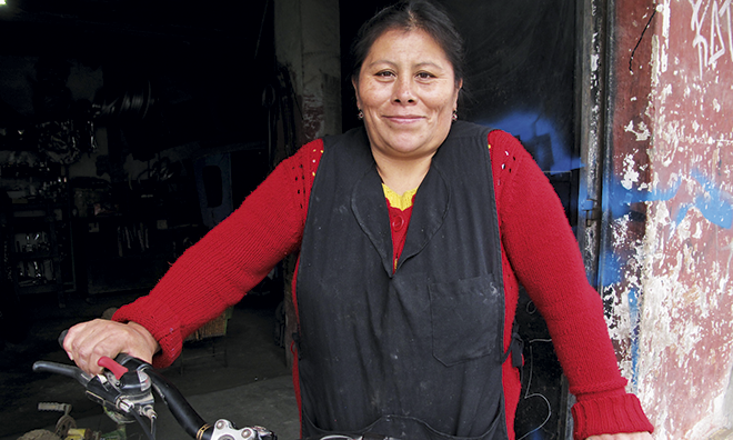 Magdalena stammt aus der Andenstadt Huancayo, wo die Frauen das Sagen haben. Ihre Mutter war ebenfalls Velomechanikerin, und beide lernten Radreparaturen in der Praxis. «Ich beobachtete sie und lernte bald, wofür welches Werkzeug gebraucht wird. Bereits als Zehnjährige flickte ich kaputte Reifen.» Ihr Leben nahm eine dramatische Wende, als ihr Vater starb. Sie musste ihrer Mutter helfen und besuchte deshalb nur die Primarschule. Die Mutter ging bald eine neue Partnerschaft ein und finanzierte die Karriere ihres Mannes als Anwalt. «Das Schlimmste jedoch war die Misshandlung durch meinen Stiefvater», erzählt Asparrín.