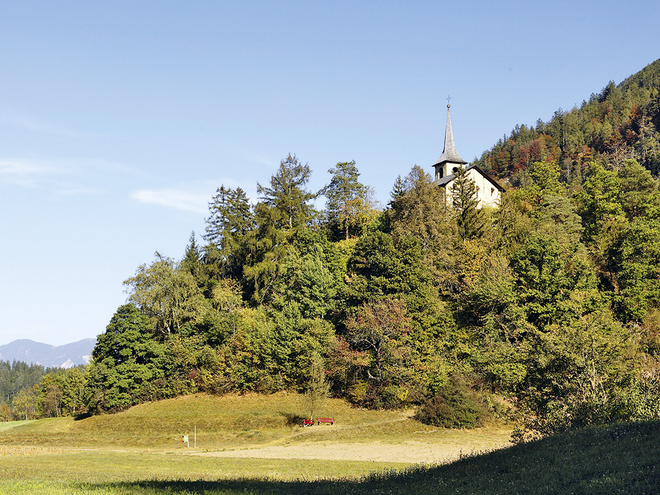 Die Weiterfahrt erfolgt nach Paspels wieder auf der Route Nr. 6. Vor Bonaduz steigen wir erneut vom Rad: Die im Mittelalter gebaute Kapelle Sogn Gieri (siehe Foto) beeindruckt mit ihren mit Fresken bemalten Wänden. Nun müssen wir uns entscheiden. Entweder folgen wir weiter der Nr. 6 bis in die Hauptstadt des Kantons Graubünden. Oder wir biegen ab und folgen dem Wegweiser nach Reichenau.