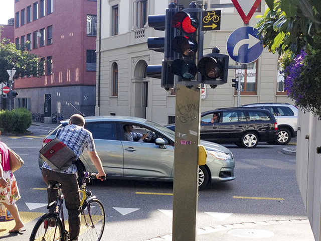 Ein Pilotversuch in Basel-Stadt hat gezeigt, das legales Rechtsabbiegen umsetzbar wäre. Nun wurde im Nationalrat ein Vorstoss eingereicht, der fordert, Rechtsabbiegen bei Rot für Velos generell zu gestatten.
