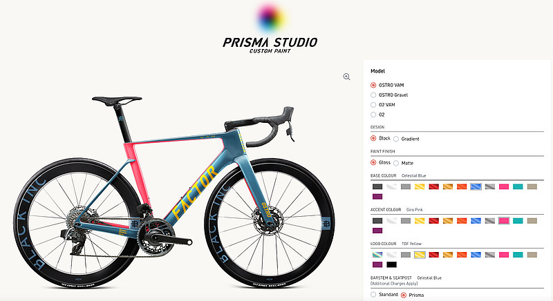 Wie es sich für einen Premium-Anbieter gehört, bietet Factor Bikes mit dem Prisma Studio einen Konfigurator, der höchsten Ansprüchen gerecht wird. (Screenshot: Velomedien AG)