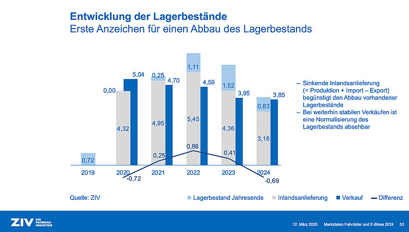 Der Zweirad-Industrieverband ZIV hat am 12. März die Zahlen des deutschen Velomarkts veröffentlicht. Das Jahr 2024 war herausfordernd für die Branche. Dennoch gibt es positive Zeichen, die vollen Lager leeren sich.