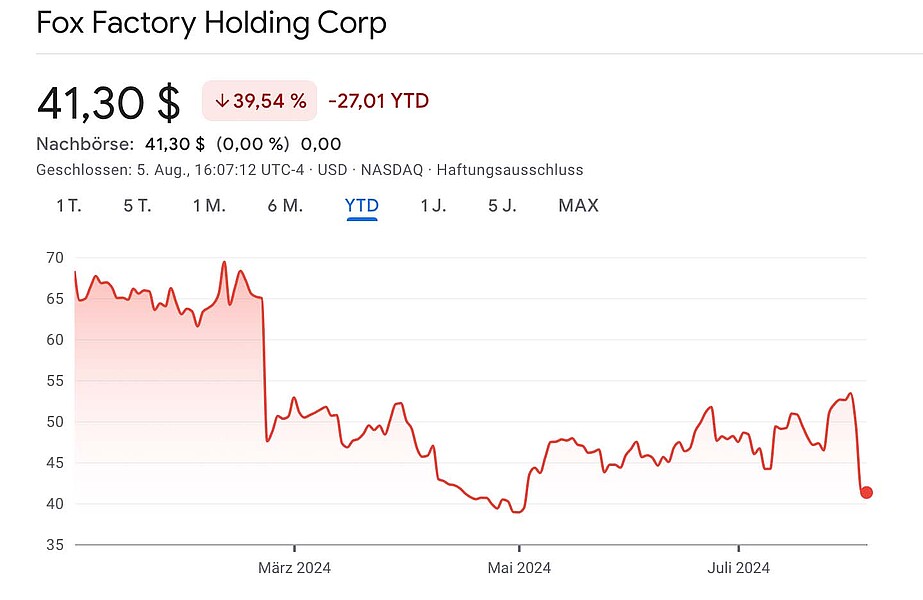 Das Geschäft der Fahrradbranche harzt. Das belegen auch die Zahlen von Fox Factory für das zweite Quartal 2024. Doch obwohl die Aktie des Unternehmens tauchte, sieht es positive Signal am Markt.