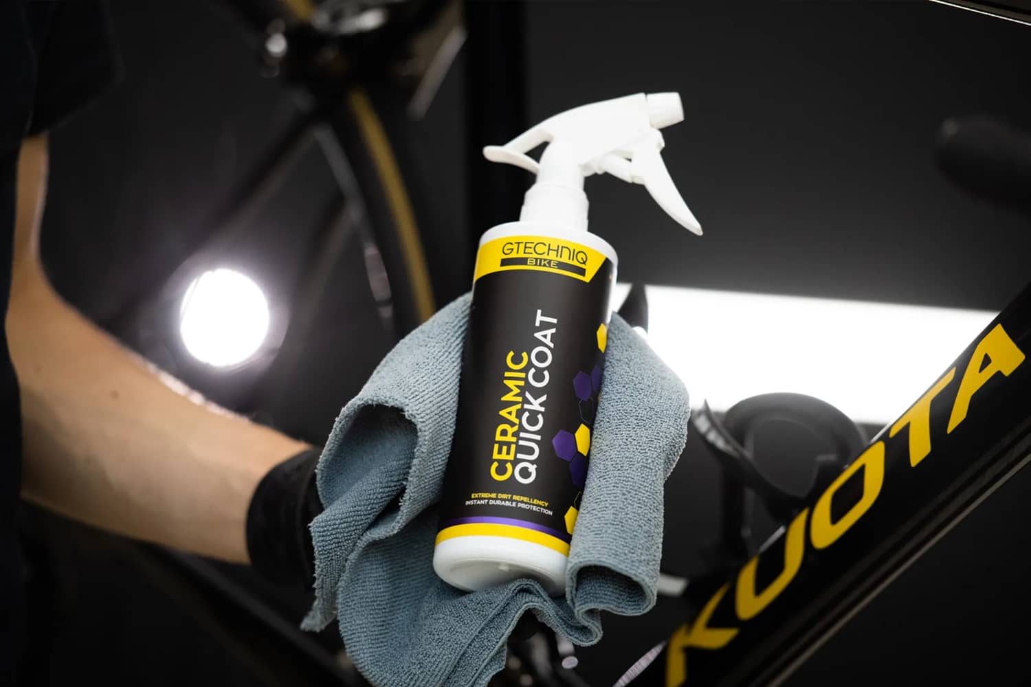 Ceramic Quick Coat ist eine anwenderfreundliche Sprühversiegelung für Fahrräder. Auf Siliciumdioxidbasis formuliert, bildet sie eine starke Bindung mit der Oberfläche und bietet bis zu 6 Monate Schmutzabweisung. Die Oberfläche fühlt sich nach der Anwendung glatt und gepflegt an. Ideal für alle modernen Fahrradmaterialien.
