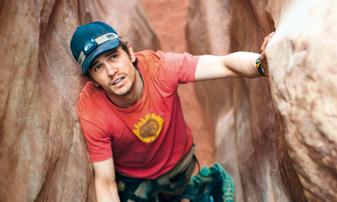 Ralston war es wichtig, dass der Filmemacher sich mit dieser rauen Landschaft, die für ihn so bedeutend geworden war, vertraut machte. Hier hatte er sich im April 2003 seine rechte Hand in einem heruntergefallenen Felsbrocken verklemmt. 127 Stunden dauerte sein Martyrium. Er kämpfte gegen Wassermangel, kalte Nächte und ungeheure Schmerzen. Mit aller Kraft stemmt sich Ralston gegen den Felsen. Er versucht es immer wieder bis zur Erschöpfung. Doch der Brocken liess sich nicht bewegen. Er bearbeitete den Stein mit seinem Multi-Tool, wollte sich damit freischlagen – ein sinnloses Unterfangen. Auch mit einem ausgetüftelten Seilzugsystem blieb er erfolglos – die Hoffnung auf Hilfe schwand zusehends.