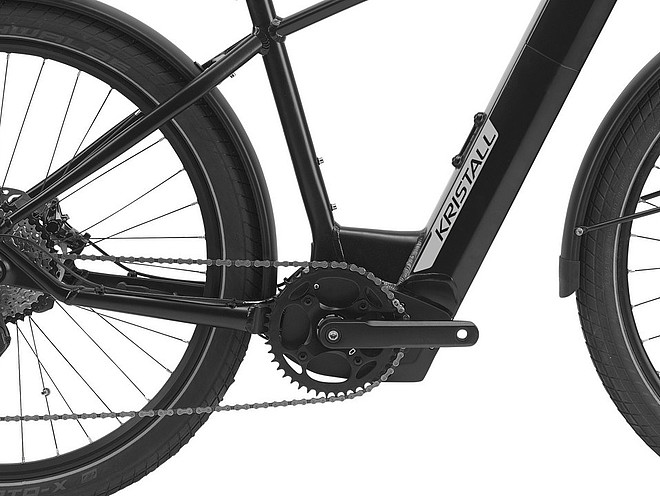 Ein weiteres Produkt-Highlight für die anlaufende Saison ist das schnelle E-Bike «E-45» (empfohlener Verkaufspreis CHF 4399.-), für welches Kristall vom Bundesamt für Umwelt und Verkehr soeben eine unbefristete Typenzulassung erhalten hat. Der Rahmen und die Gabel dieses Modells sind sauber aufeinander abgestimmt, und der Akku von BMZ steckt im Unterrohr. Für kraftvolle Unterstützung sorgt der «Drive TF»-Antrieb vom Brose. Shimano steuert die hydraulischen Scheibenbremsen bei, und bei der Schaltung bietet Kristall die Auswahl aus Zehngang-Kettenschaltungen aus den Gruppen XT oder Deore sowie einer Alfine-Getriebenabe in Kombination mit einem Zahnriemen von Gates. Lieferbar wird das «E-45» ab Anfang März.