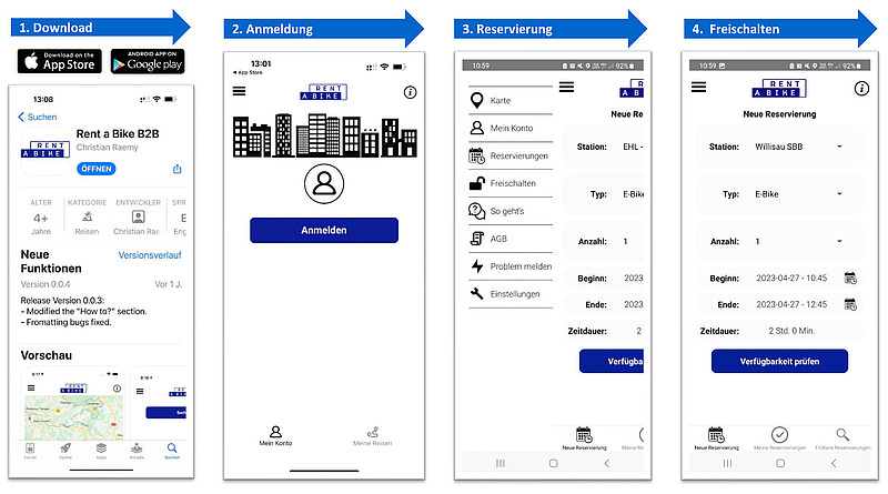 In Kombination mit einem Smartlock erlaubt die «Rent-a-Bike»-App ein einfaches Flottenmanagement, inklusive des Freischaltens des Unternehmens-E-Bikes für befugte Angestellte. (Bilder: ZVG)