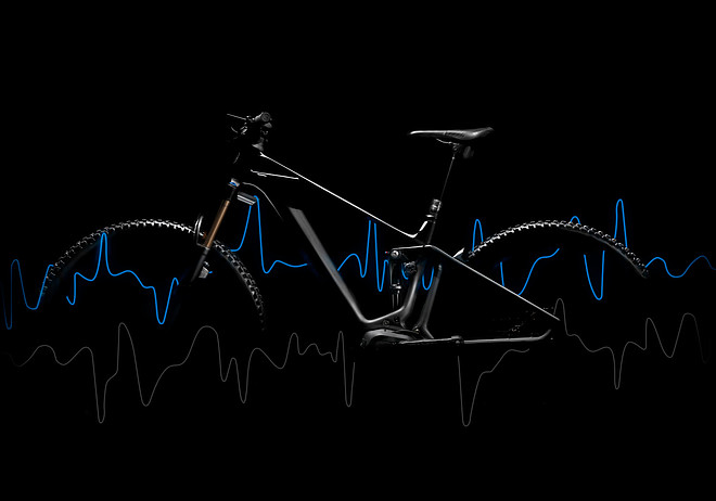 Die exakte Messung der Fahrwerkstätigkeit erfolgt mit Hilfe von Magneten. Diese sind vorne am Tauchrohr der Gabel und hinten auf der Achse des Umlenkhebels verbaut. Dazu kommen Sensoren im Steuerrohr sowie an der oberen Wippe des Hinterbaus. Im Steuerrohr ist auch das GPS-Gerät verbaut, das mit dem Smartphone verbunden wird. Die Laufzeit der aufladbaren Akkus vom «Mind»-System gibt Mondraker mit über 20 Stunden an, und das Mehrgewicht soll weniger als 200 Gramm betragen.