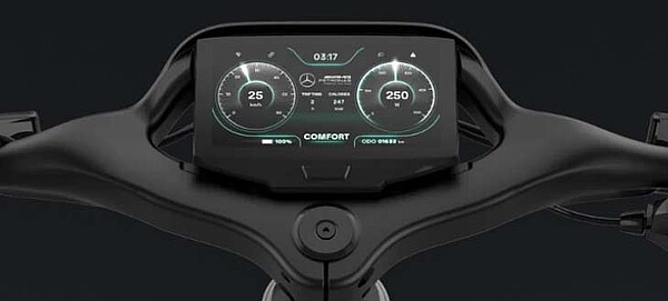 Am ehesten lässt das Cockpit des Elektrovelos Anleihen an einen Sportwagen erahnen. In den Lenker integriert ist ein 5,5-Zoll-Bildschrim mit Touch-Funktion. Über das Display sollen sich die wichtigsten Funktionen des Elektrovelos steuern lassen.