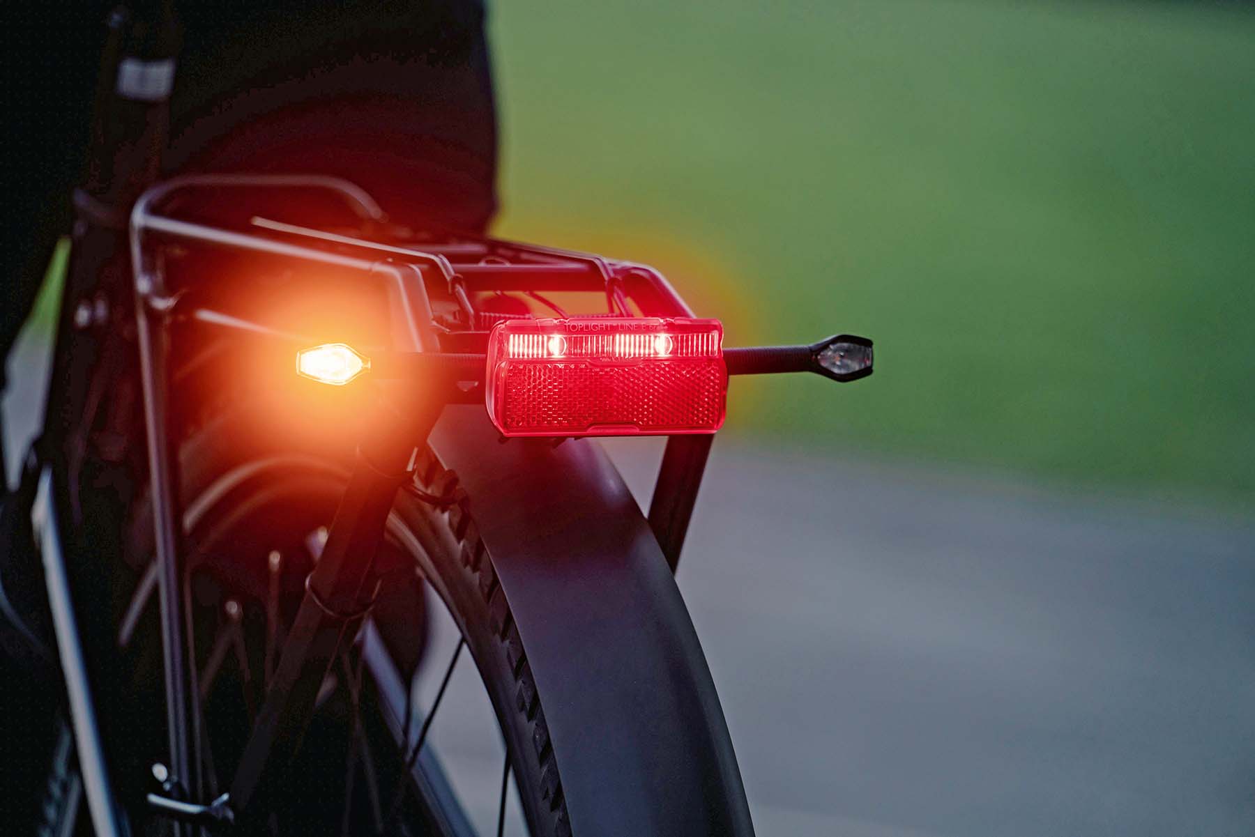 Der deutsche Beleuchtungsspezialist Busch und Müller hat für E-Bikes eine Blinklichtanlage entwickelt. Damit soll das Fahren sicherer werden; einerseits, weil die Zeichen für den Richtungswechel besser gesehen werden, andererseits, weil dafür nicht mehr eine Hand vom Lenker genommen werden muss, was besonders bei schnellen E-Bikes ein grosser Vorteil ist. Die «Turntech»-Blinklichtanlage wird über den Bike-Akku mit Strom versorgt und vom Lenker aus per Daumendruck bedient.