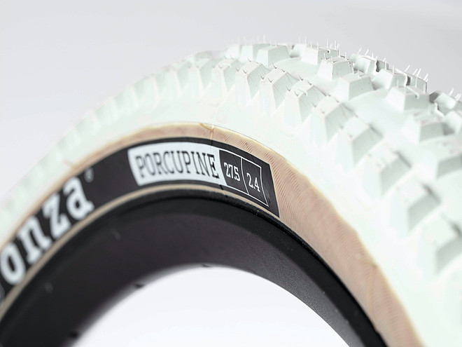 Die frühen 90er Jahre gelten als die Goldgräber-Zeit im Mountainbike-Segment: Die Industrie überbot sich mit einem Innovationsfeuerwerk, die UCI veranstaltete die ersten offiziellen Weltmeisterschaften und Grosskonzerne wie Swatch, Grundig und Volvo engagierten sich als Sponsoren im Rennsport. Ein Kind dieser Blütejahre war der «White Porcupine» von Onza, ansonsten für Lenkerhörnchen bekannt: Dieser Reifen wies auf der Lauffläche gleichmässig angeordnete, zylinderförmige Stollen auf - dem Stachelkleid eines Stachelschweins nicht unähnlich. In der optisch auffälligen Variante mit weissen Laufflächen erwies sich der Kultreifen von anno dazumal aber als nicht besonders haltbar: Bei heissen Bergab-Ritten flogen einem schon einmal ganze Stollen um die Ohren, da diese nicht eben solide im Reifenbett verankert waren. Nachdem die Kultmarke Ende der 90er Jahre vom Markt verschwunden war, sicherte sich der Baselbieter Michel Manz 2006 die Rechte an der Marke.