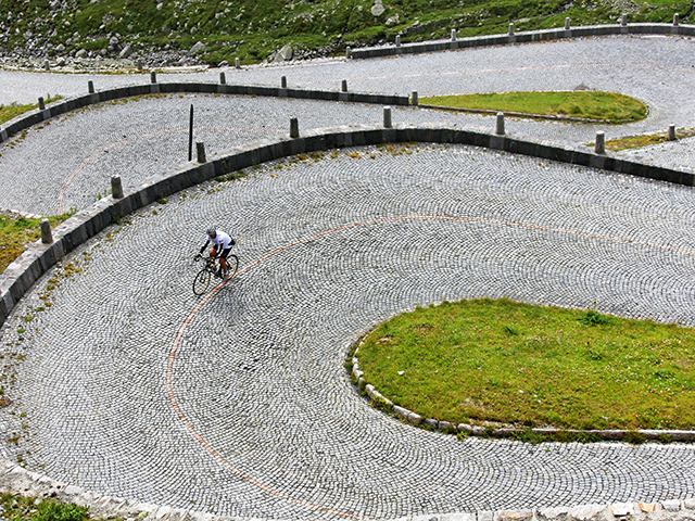 Strecke: Ab Airolo auf der alten Passstrasse Tremola auf den engen Serpentinen Richtung Gotthardpass. Die kopfsteingepflasterte Strasse ist kurvig und anspruchsvoll. Pro Runde sind 25 km und 947 Höhenmeter zu bewältigen.