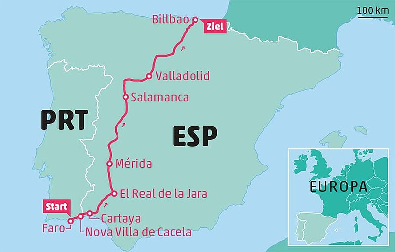 Das ist verrückt!» Wir sitzen nördlich von Bilbao in unserer Ferienwohnung. Vor uns ausgebreitet eine Spanien- und eine Portugalkarte. Wir lassen die vergangenen sieben Wochen Revue passieren. Sieben Wochen, in denen wir mit Mountainbikes von Faro im Süden Portugals bis hierher gefahren sind. Wir haben es geschafft, und das fast ohne Pannen: Zweimal fiel die Kette raus, einmal hatte ich einen platten Vorderreifen.