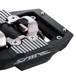 Zudem legt Shimano bei den Pedalen für die Bergab-Fraktion nochmals mächtig nach: Beim Modell PD-M820 steckt der SPD-Mechanismus gut geschützt in einem robusten Aluminium-Pedalkäfig. Vier in der Höhe verstellbare Pins pro Seite bieten auch dann Halt, wenn der Fuss nicht fest arretiert ist. Die zur Saint-Gruppe gehörenden Pedale sind entsprechend hochwertig gelagert und wiegen pro Paar 546 Gramm. Wer Plattform-Pedalen bevorzugt, steht vor der Qual der Wahl: Das Modell PD-M828 ist auf Saint-Niveau angesiedelt, bietet 12 griffige Pins pro Seite und wiegt pro Paar 493 Gramm. Zur XT-Gruppe gehörend, ist das mit 10 Pins pro Seite bewehrte Modell PD-M8040 in zwei Käfiggrössen erhältlich - passend zu verschieden grossen Füssen. Zu guter Letzt bietet auch das Einsteiger-Plattformpedal PD-GR500 mit 9 Pins pro Seite soliden Halt - ob im Gelände oder im Alltag.