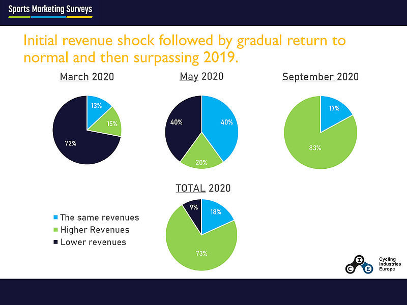 Der Verband Cycling Industries Europe (CIE) ist die Lobbyorganisation der europäischen Veloproduzenten. Zu dessen Arbeit gehört das Erarbeiten und Publizieren von Zahlen und Fakten zur Fahrradbranche. Während der grassierenden Covid-19-Pandemie hat CIE darum vier grosse Umfragen unter Herstellern in Auftrag gegeben. Diese wurden im März, Mai, September sowie Ende 2020 durchgeführt.
