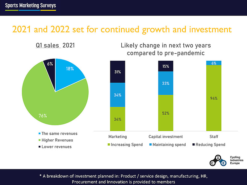 Daraus folgert CIE, dass sich verschiedene Stützungsmassnahmen von europäischen Regierungen ausbezahlt hätten: Fast 60 Prozent der antwortenden Hersteller nahmen im Verlauf des Jahres 2020 Hilfe in Anspruch. Angesichts des kommerziellen Erfolgs der Branch ist es überraschend, dass jeder dritte Herstelle die Ausgaben fürs Marketing reduzieren will. Das trifft nicht nur Velomedien, sondern auch Radsportler und professionelle Rennteams.