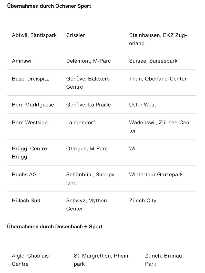 In einem ersten Schritt wechselt nun ein Teil der 49 SportX-Standorte in der Schweiz den Besitz: Laut einer Medienmitteilung der Migros hat sich diese mit der Dosenbach-Ochsner Gruppe auf den Verkauf von 27 Filialen geeinigt. 24 SportX-Standorte werden unter der Flagge von Ochsner Sport weitergeführt und weitere drei zu Dosenbach-Verkaufspunkten.