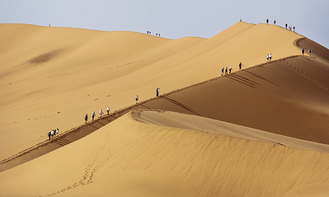 Mit 2,5 Einwohnern pro Quadratkilometer ist Namibia das am dünnsten besiedelte Land Afrikas. Seine Fläche entspricht 20 Mal jener der Schweiz. Von den etwas mehr als 2 Millionen Einwohnern leben die meisten im Grossraum Windhoek. Wüste und Halbwüste prägen den Grossteil des Landes. Unser Autor muss dem entsprechend sein Velo mitunter durch den Sand schieben, dafür hat er die meisten der unterwegs besuchten Campingplätze für sich alleine.