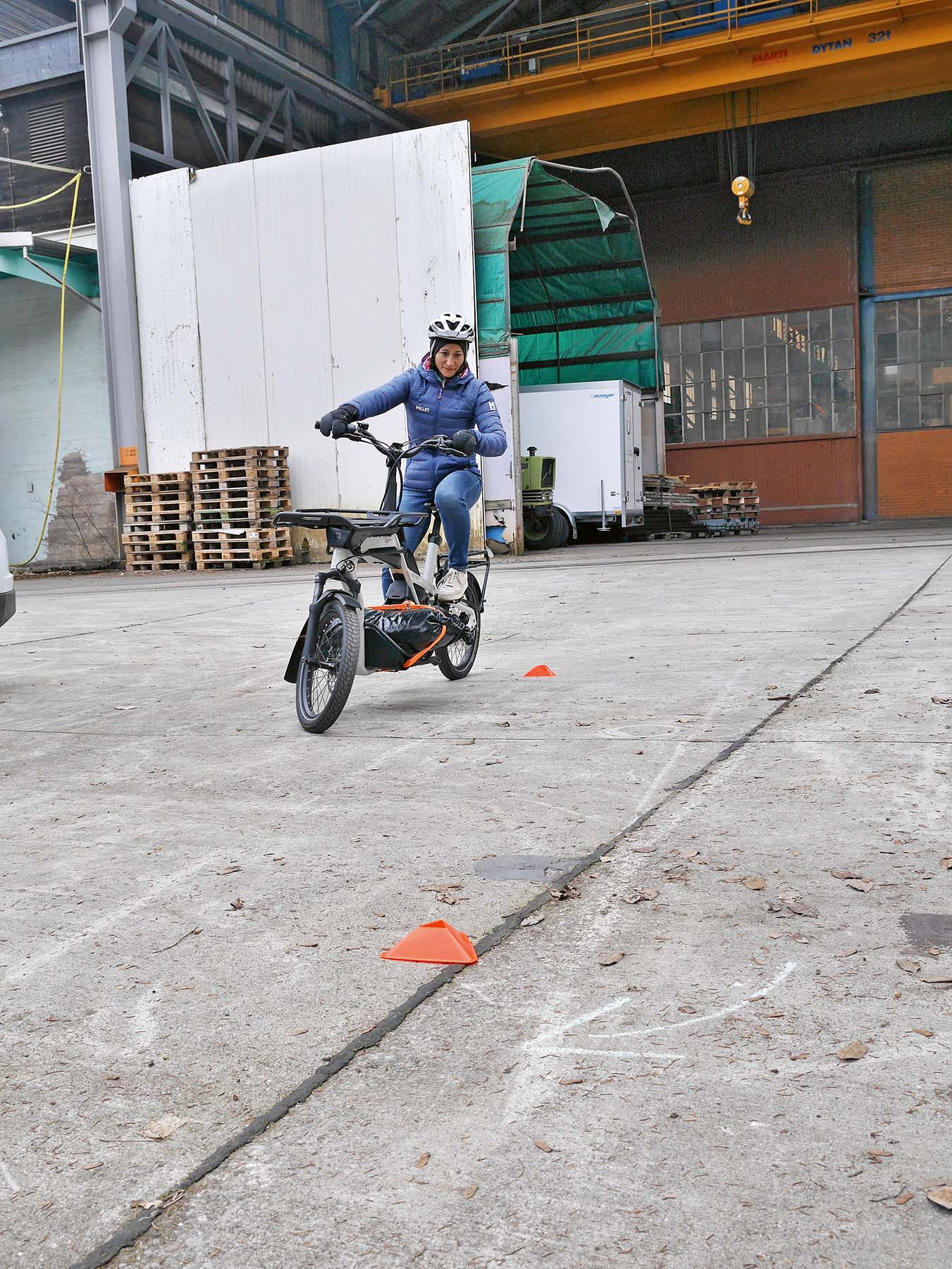 Welche Einflüsse eine Beladung von 20 kg auf das Fahrverhalten haben kann, zeigt die Bergfahrt. Leer pedaliert es sich mit allen Micro-Cargobikes recht angenehm die 15 % steile Teststrecke hoch. Ganz anders sieht es aber aus, wenn mitsamt Ladung an dieser steilen Stelle angefahren werden muss. Auch im kleinsten Gang und der höchsten Unterstützungsstufe war es nicht allen Testpersonen möglich, mit den Modellen von Super Bicycles und Monopole in der Steigung anzufahren. Hierbei ist zu erwähnen, dass das «Super Mighty» bald mit einem stärkeren Motor in der Schweiz erhältlich sein soll.