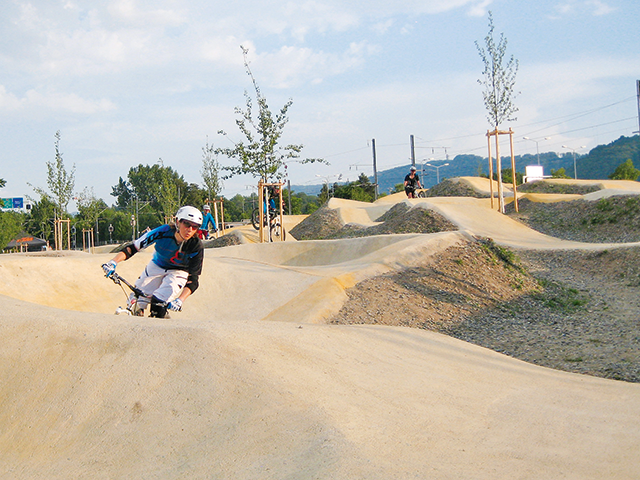 Der Praxisteil des ersten Abends führt uns noch nicht auf den Berg oder in den Wald, sondern zum Pumptrack hinter dem Einkaufszentrum Sihlcity, wo sich auch das Vereinsgelände von Züritrails befindet. Wir lernen, gezielt und auf den Punkt zu bremsen, erfahren im Selbstversuch, was passiert, wenn mit voller Kraft nur die Vorderbremse gezogen wird, erlernen die Technik des Vorderrad-Anhebens (etwas, was ich in meiner 30-jährigen Velopraxis nie gebraucht habe, sehr zum Erstaunen meiner halbwüchsigen Jungs, für die das überhaupt kein Problem darstellt ...) und vieles mehr. Dann gehts ab auf den Pumptrack, auf den ich mich wohl alleine nie getraut hätte. Mit der Frauengruppe machts aber richtig Spass, auch wenn wir nicht auf Anhieb alle Buckel meistern.