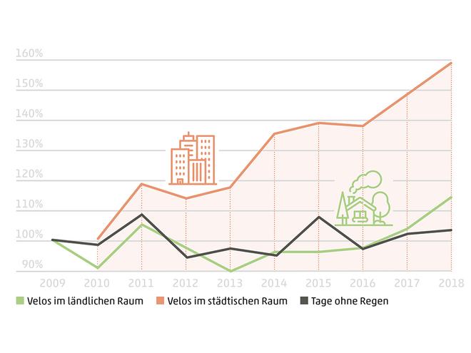 Die Unterscheidung von städtischem und ländlichem Raum sei wichtig, heisst es weiter im Bericht. Denn im städtischen Raum überwiege der Alltagsverkehr. Velos würden vorwiegend für den Arbeits- oder Schulweg und zum Einkaufen verwendet. Im ländlichen Raum stehe der Freizeitverkehr im Vordergrund.