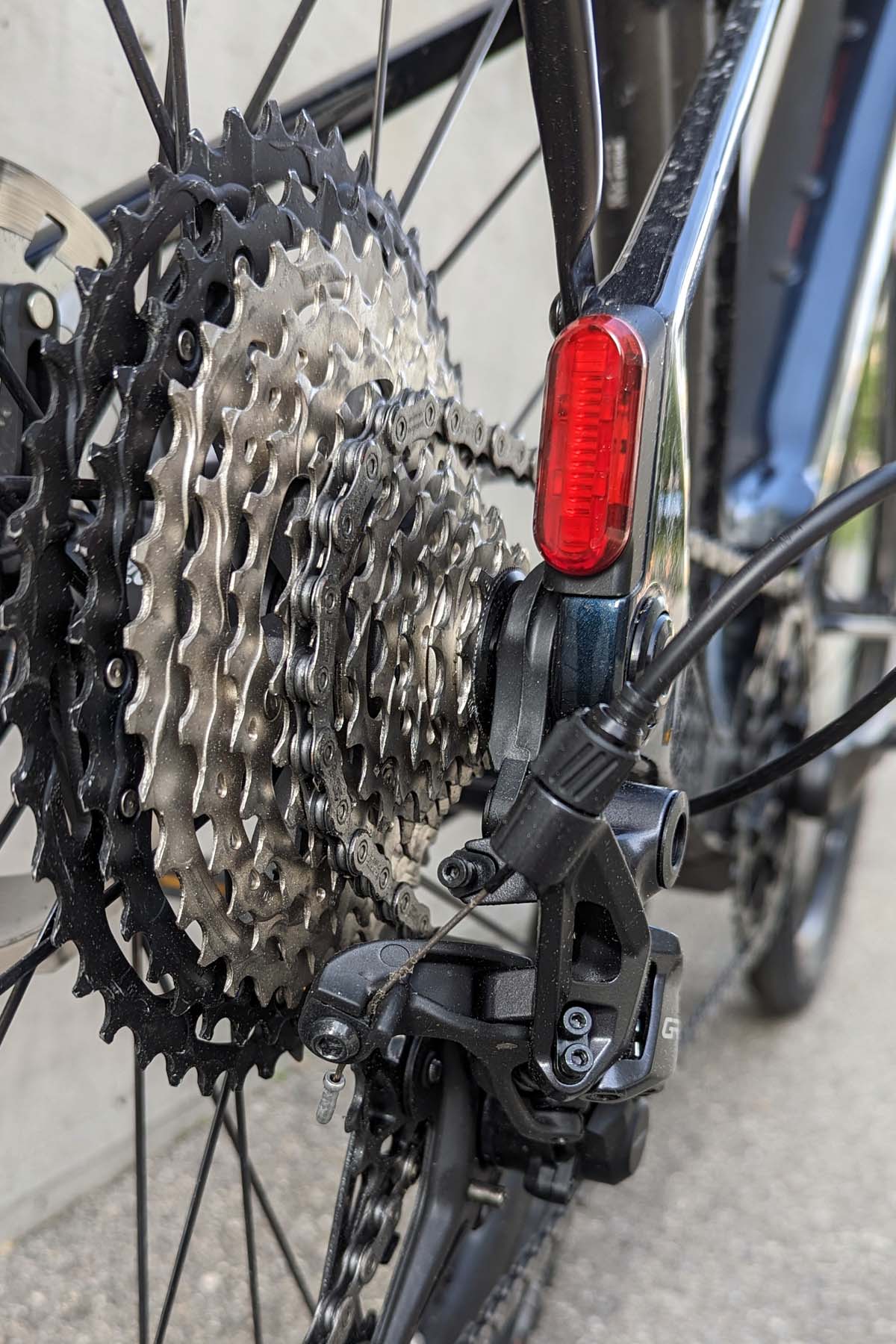 Aktuell verfügen die Leuchten über keine Bremslichtfunktion. Die nötigen Kabelführungen im Rahmen sind aber bereits vorhanden – Canyon könnte hier also in Zukunft ein Bremslicht nachschieben.