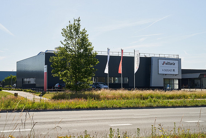 Vittorias neues Hauptquartier für Nordeuropa ist in einem energieeffizienten Gebäude mit 1200 Quadratmetern Fläche untergebracht. Von hier aus will Vittoria die Geschäfte in Nordeuropa steuern und so die Wege für wichtige Märkte wie Deutschland und der Benelux-Region verkürzen. Unter dem gleichen Dach befindet sich auch die modernisierte Produktion von A. Dugast. Diese konnte ihr Volumen durch Investitionen in den Maschinenpark und die Anstellung zusätzlicher Mitarbeiter mehr als verdoppeln. Und das, obwohl die Fertigung weiterhin in Handarbeit erfolgt.