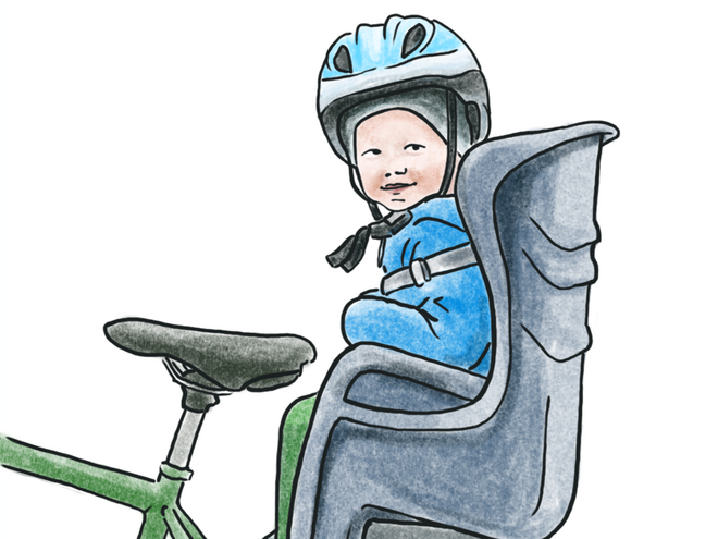 Kinder dürfen auf einem Kindersitz oder im Anhänger mitfahren. Erwachsene können auf einem Elektrotandem zusammen pedalieren.