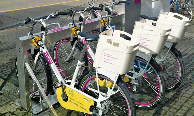 «PubliBike», das gemeinsame Angebot von PostAuto, SBB und Rent a Bike,