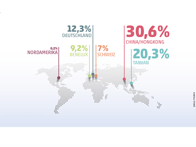 Noch vor 50 bis 60 Jahren stammte eine Mehrheit der in der Schweiz verkauften Velos ausheimischer Produktion. Heute ist das Velo ein globales Produkt. Angeführt von China und Taiwanhaben asiatische Länder bei der weltweiten Fahrradproduktion die Nase vorn.