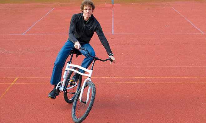 «Damit kann man doch nicht fahren!», denkt der Testfahrer. Denn das «SchwingDing» ist ein Velo mit einem Gelenk mitten im Rahmen und soll für ein neues Fahrgefühl sorgen. Die Fahrt hat trotz leichter Blessuren viel Spass gemacht.