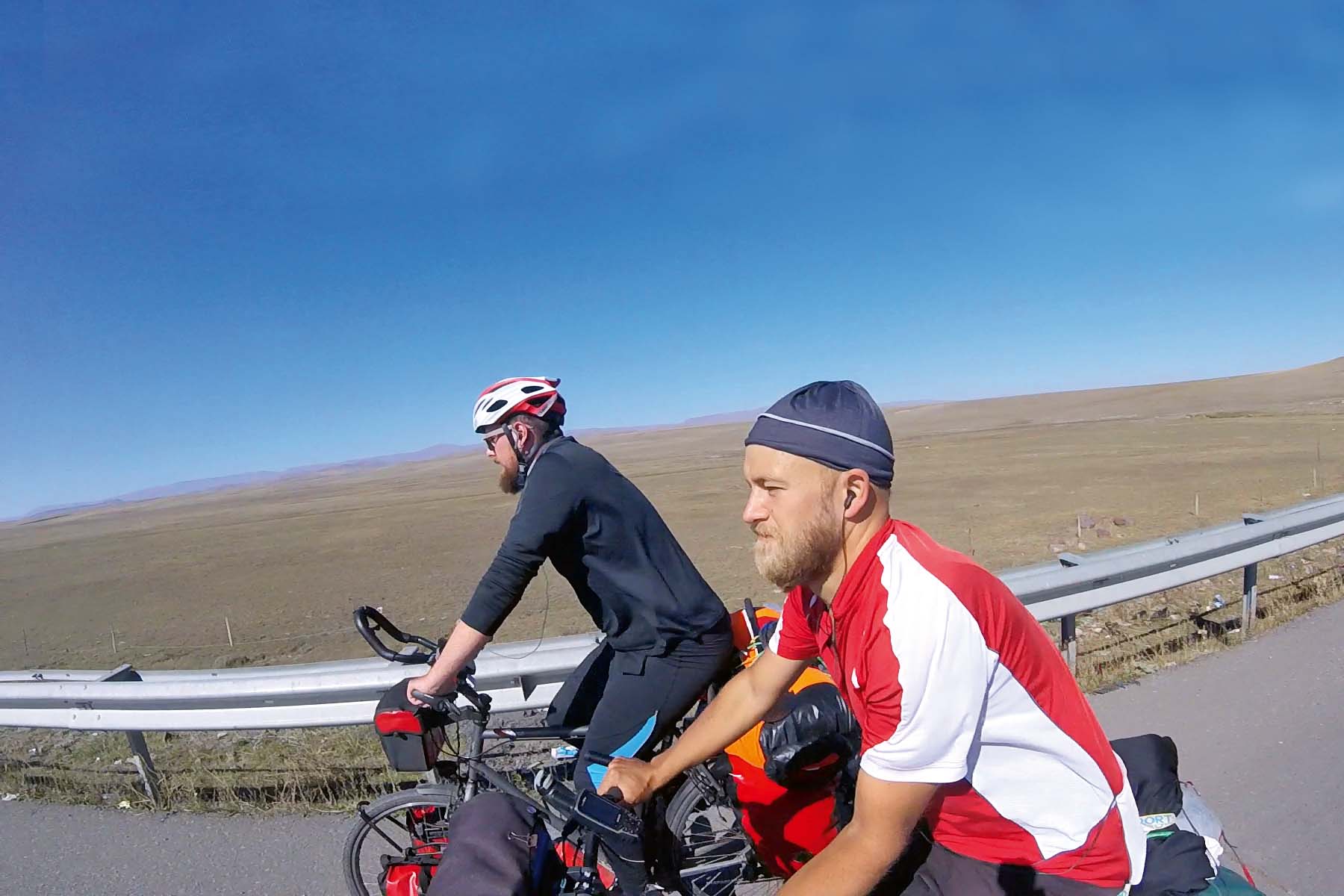 Keule und Otti sind bereits über 50 Tage unterwegs, als sie den ersten Platten einfahren. Als es darum geht, den Schlauch zu wechseln, stellt Pechvogel Otti fest, dass er die falschen Schläuche eingepackt hat. Die Felgen seines Velos sind für französische Ventile ausgelegt. Zum Glück gibt es Flicken. Er hat zuvor zwar noch nie einen Schlauch repariert, aber schon den einen oder anderen Youtube-Film darüber gesehen. Der erfahrene Velozuschauer bekommt es langsam mit der Angst zu tun …