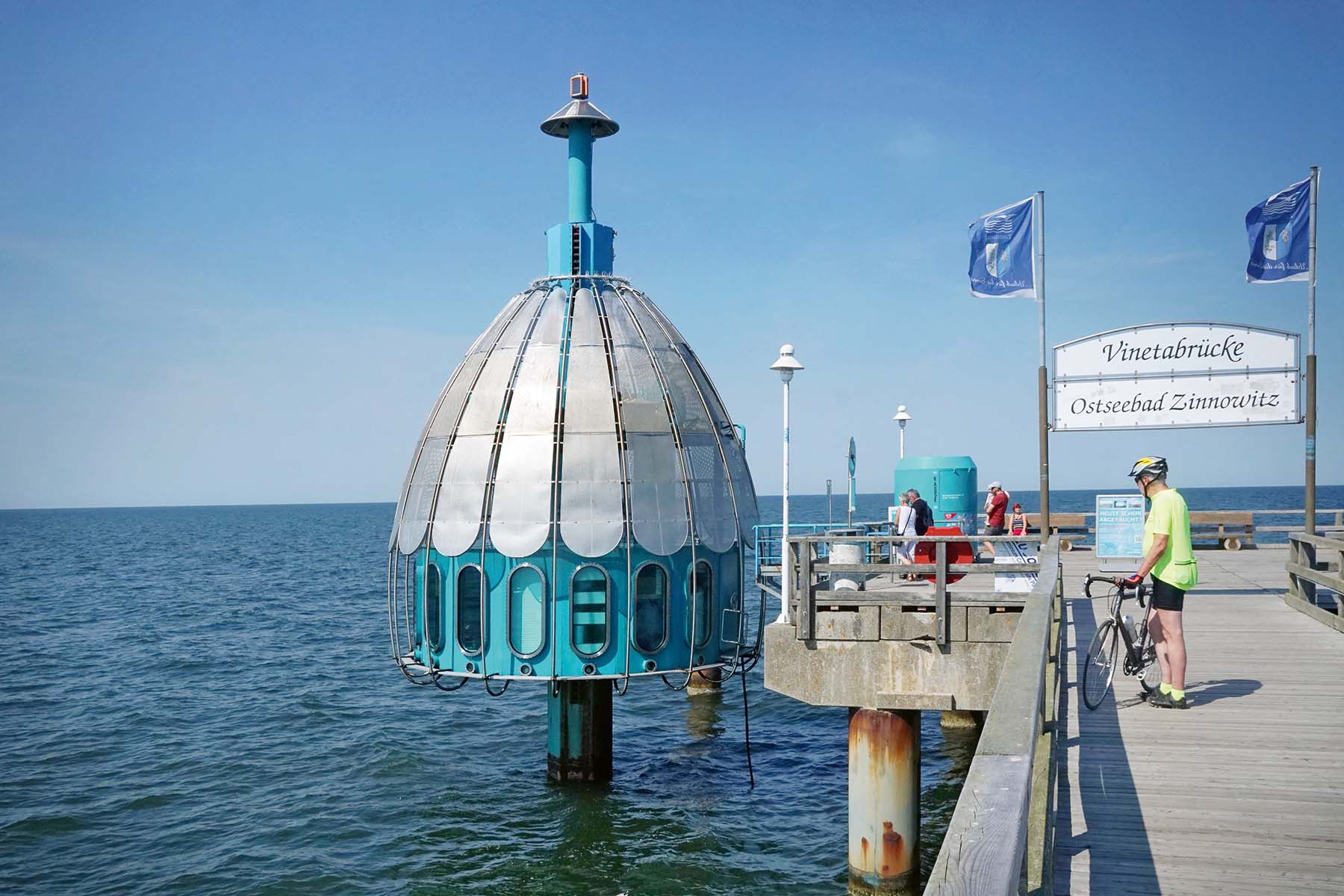 Nach drei Tagen sind wir auf Usedom und an der Ostsee angelangt, vorbei an weitläufigen und eindrücklichen Wasser- und Naturschutzgebieten. Nach Rügen sei ­Usedom die zweitgrösste deutsche Insel, lesen wir. Das haben wir kaum bemerkt, die 325 Meter lange Zecheriner Klappbrücke überquert den Peenestrom, den wir eher als grossen Fluss wahrnehmen. Das Stettiner Haff haben wir umfahren.